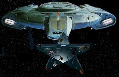 ".... evasive man...." was all Kaemon was able to say as he watched the smaller star-shaped ship pass "under" the main viewscreen. "Aft view!." The orders were quickly complied with as the small ship came into view, still in the same position, and then disappeared, as it's natural camoflouge did it's job.